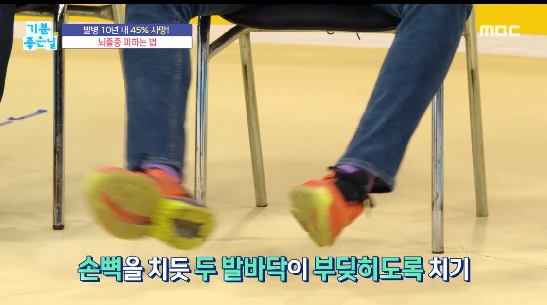 1. 손뼉을 치듯 두 발바닥이 부딪히도록 친다.