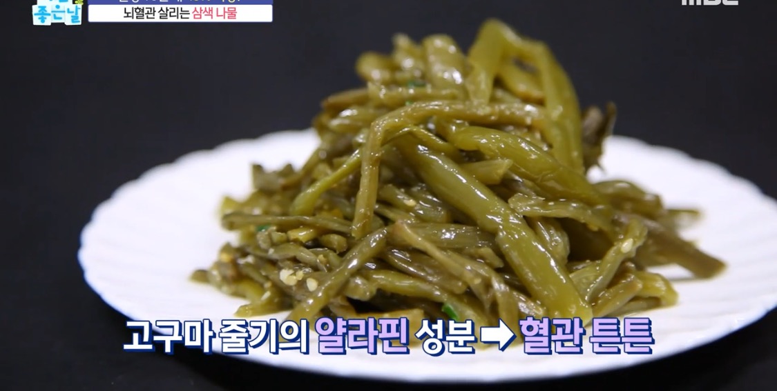 시금치와 고구마줄기, 고사리에요.