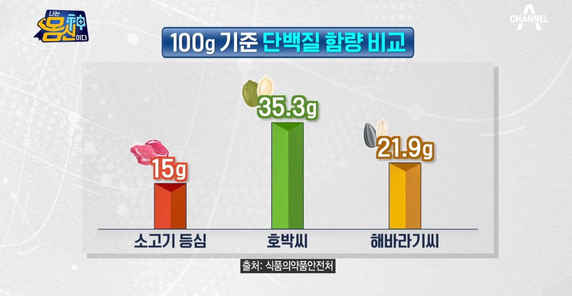100g 기준 소고기등심 15g, 호박씨 35.3g,