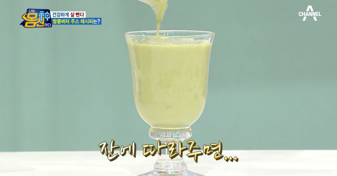 아침 공복에 땅콩버터 주스 한잔을 마시고