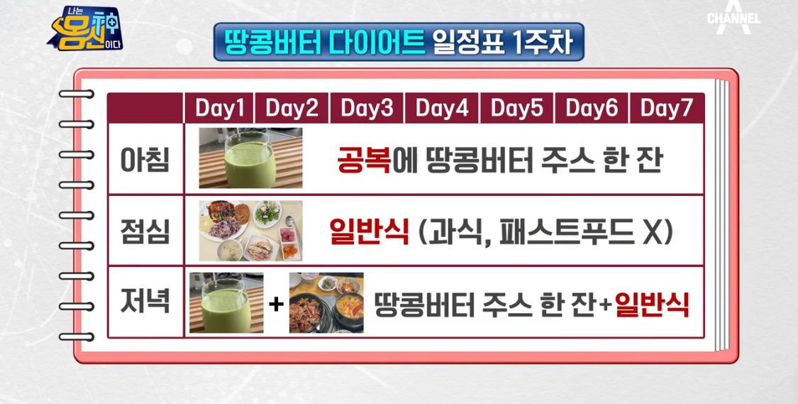 아침저녁으로 땅콩버터주스를 섭취해요.