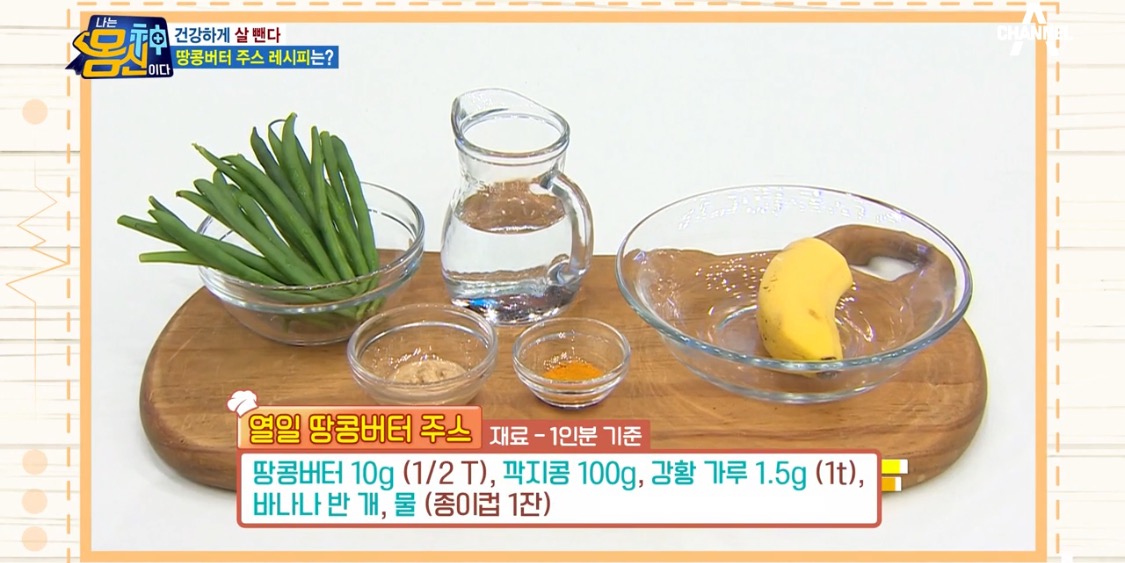 재료: 땅콩버터, 깍지콩, 강황가루,
