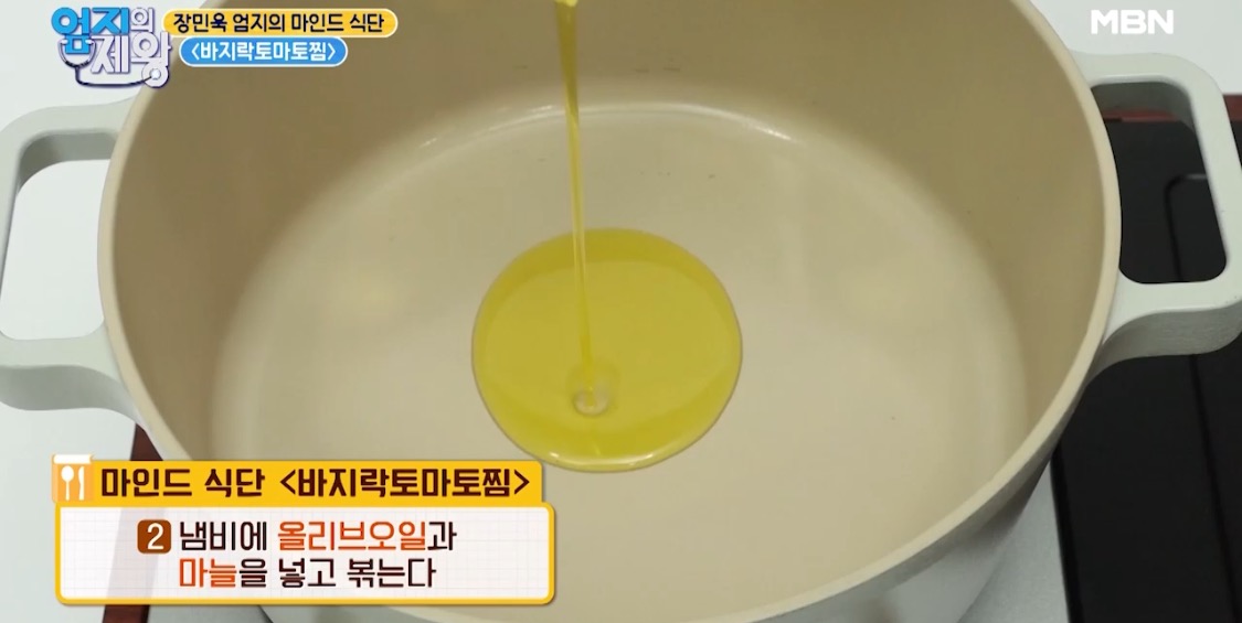 2. 냄비에 올리브오일과 마늘을 넣고 볶는다.