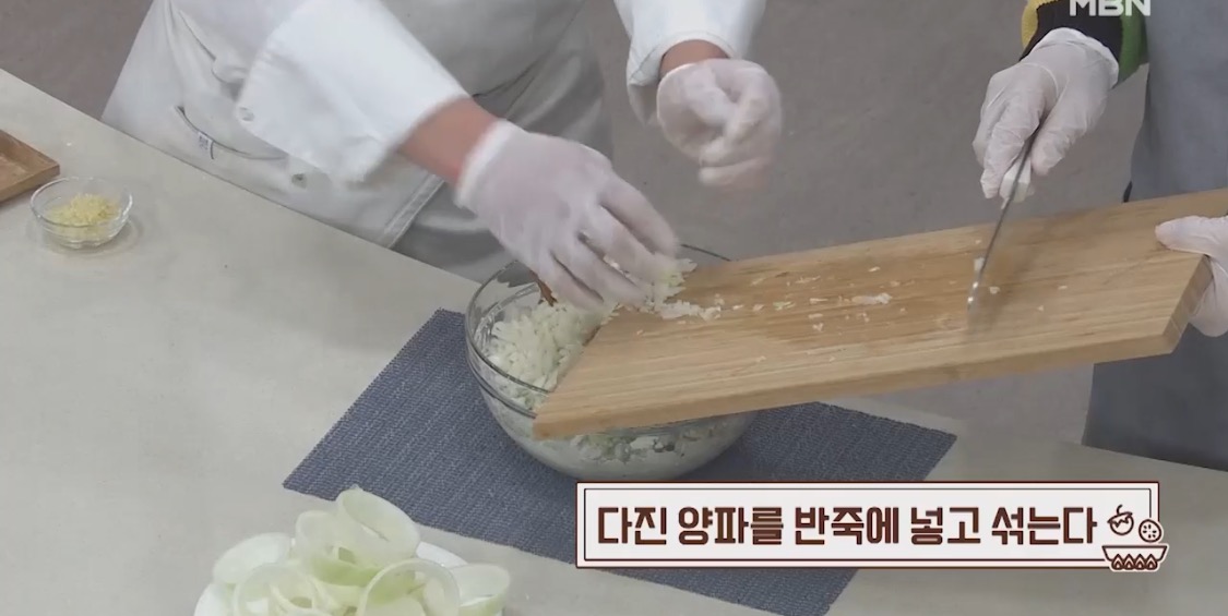 5. 동그랑땡에 사용할 양파 링을 분리한다.