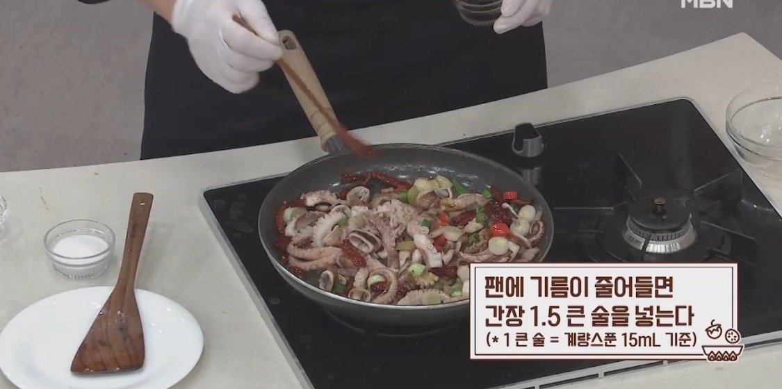 8. 다진마늘 1큰술, 설탕 1큰술을 넣고