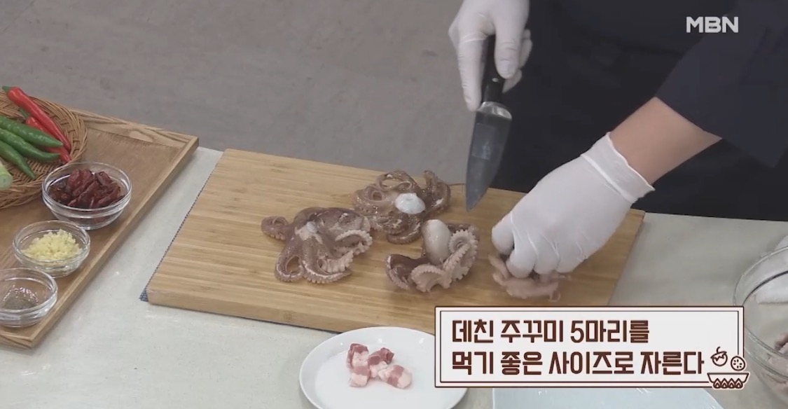 4. 데친 주꾸미는 먹기좋은 사이즈로 자르고