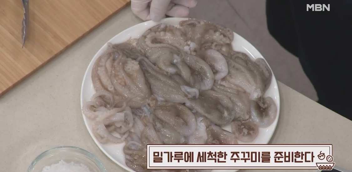 다진마늘, 설탕, 후추1. 밀가루에 세척한 주꾸미를