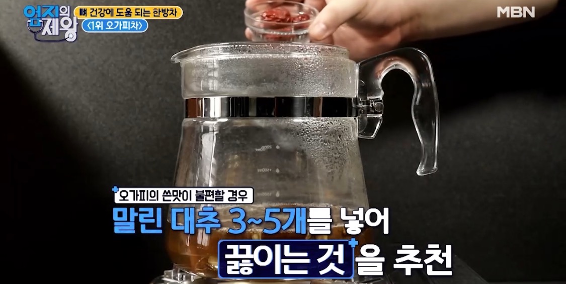 말린 대추 3~5개를 넣어 끓이는 것을 추천해요.