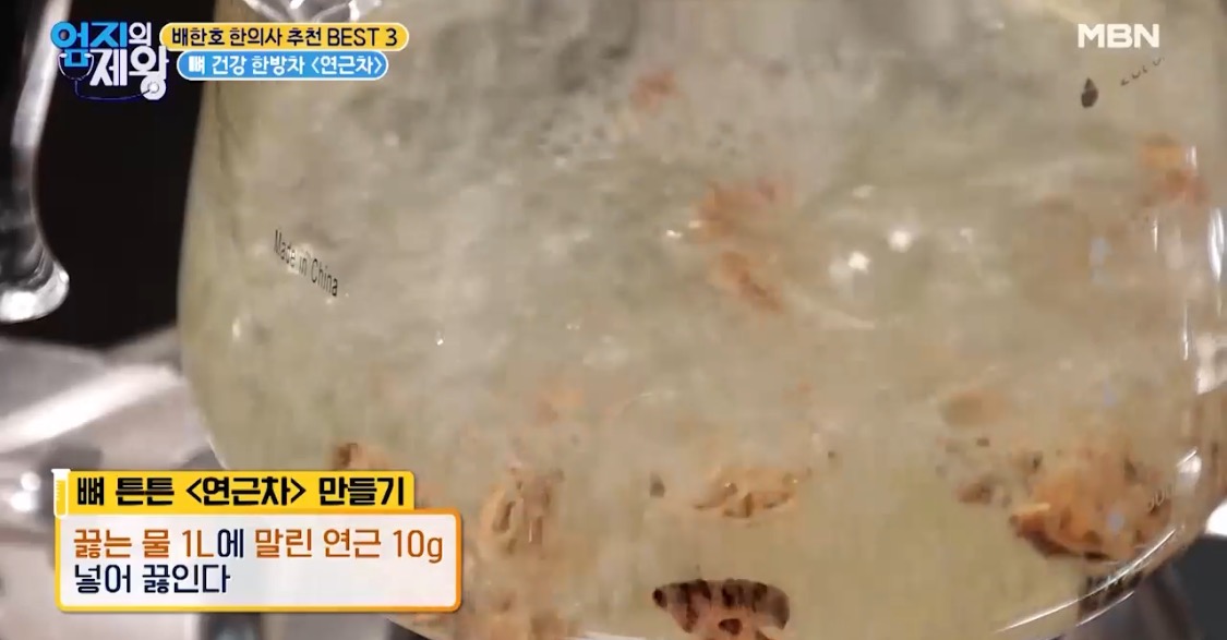 -> 끓는 물 1L에 말린 연근 10g을 넣어 끓인다.