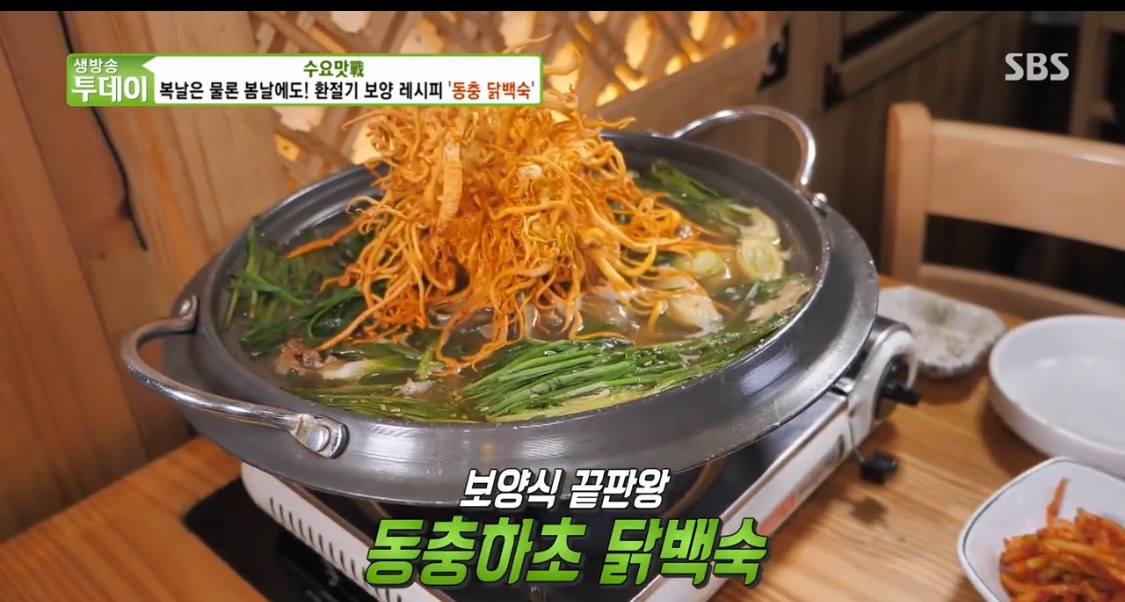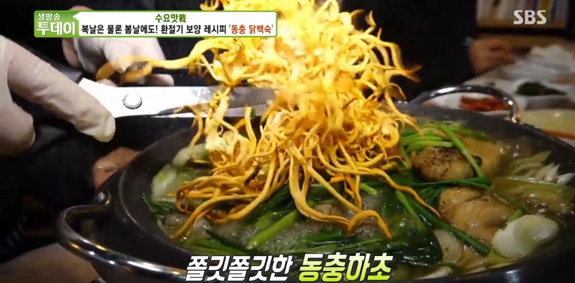 올라가 눈길을 끕니다.백숙에 들어가는 동충하초는