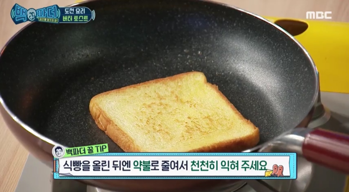 Tip. 달걀이 다 익기 전에 식빵을 올려야