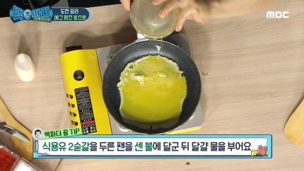 Tip. 달걀을 올린 뒤에는 불을 줄여야해요.