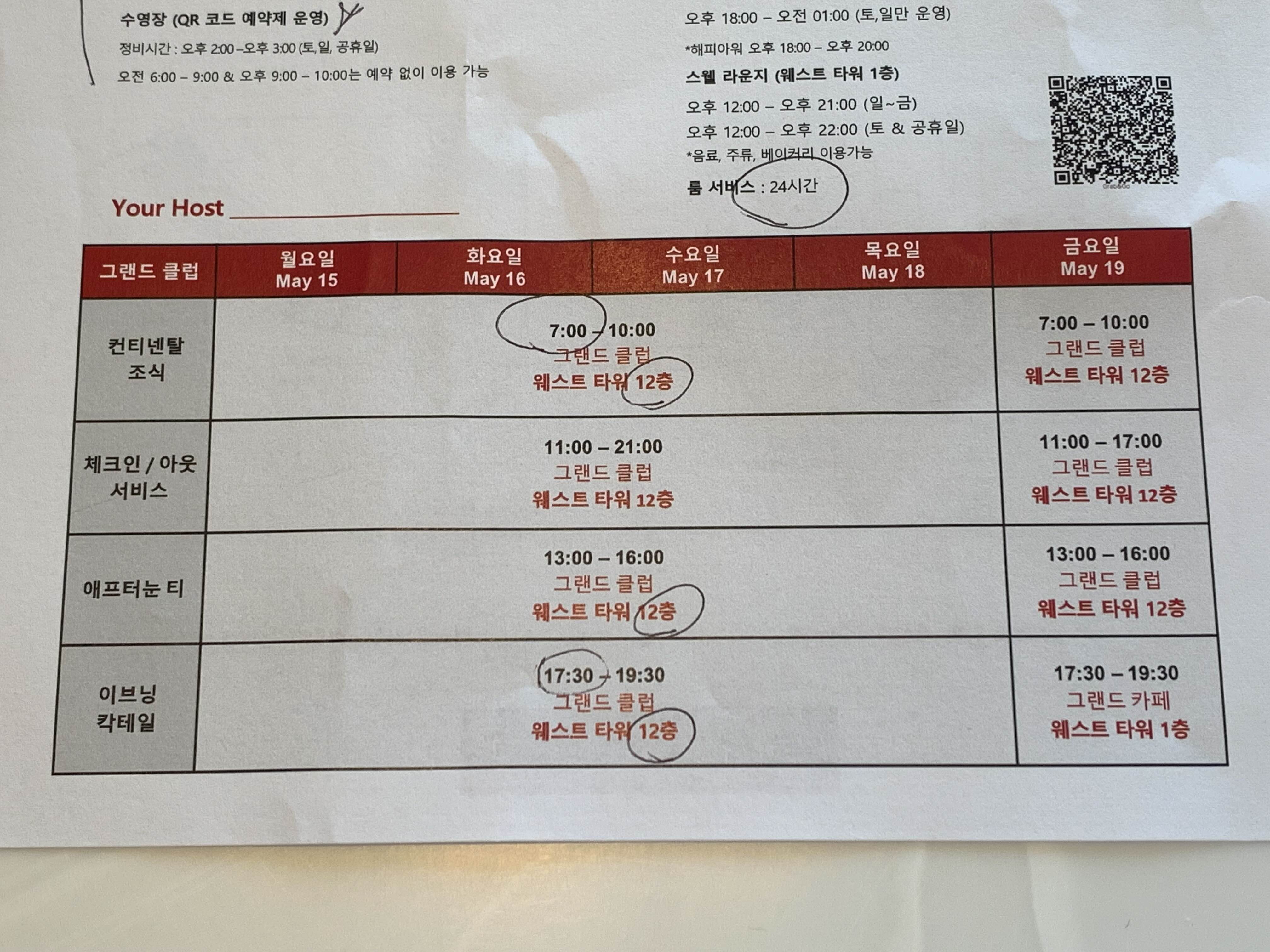 애프터눈티 디너뷔페 피트니스센터 수영장셔틀버스 탑승위치
