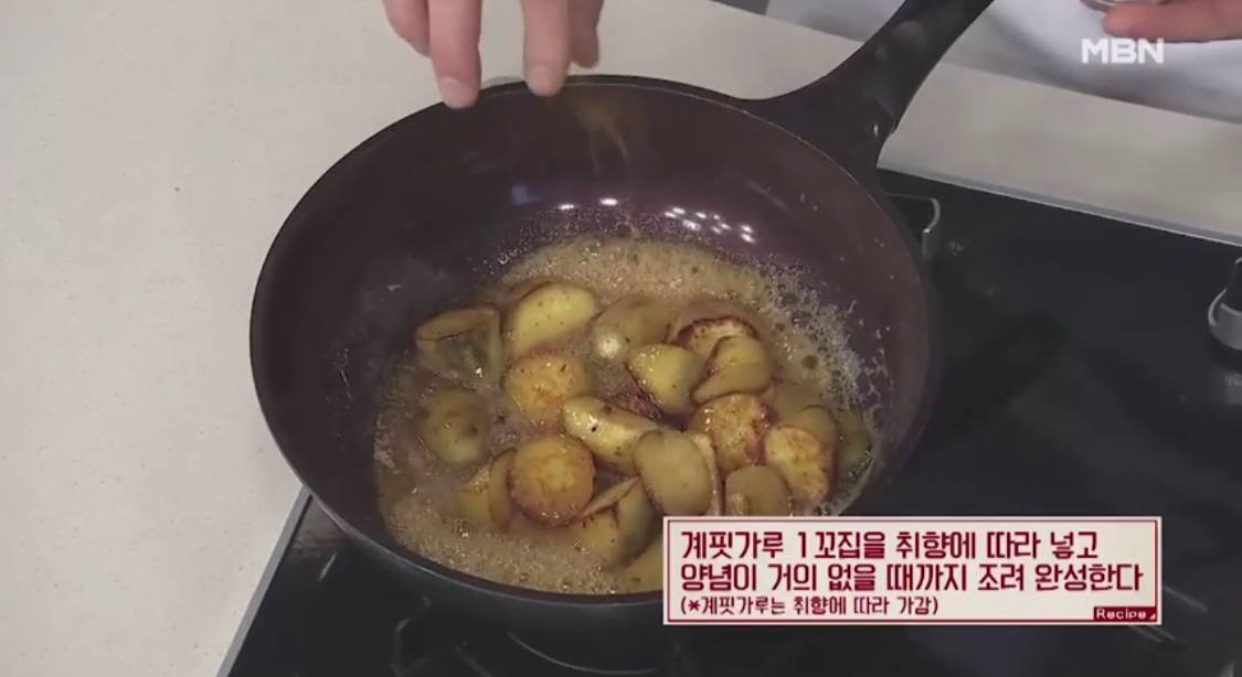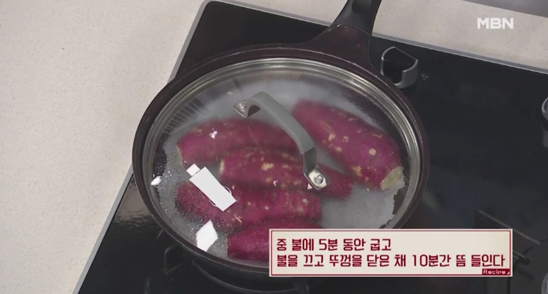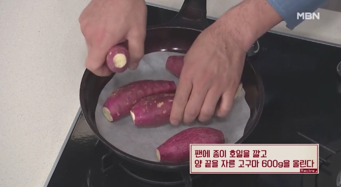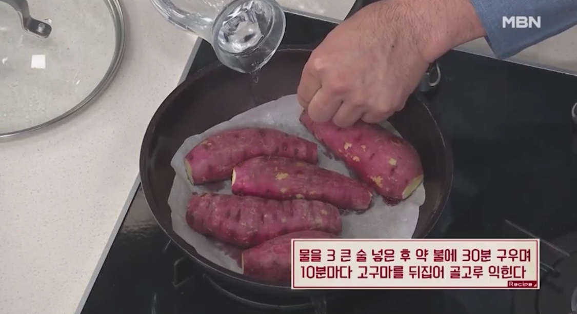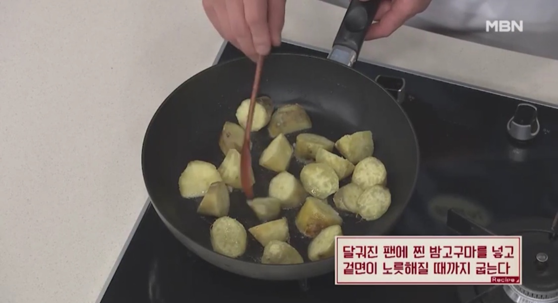 3. 달궈진 팬에 고구마를 넣고
