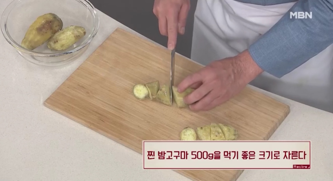 1. 찐 밤고구마를 먹기 좋은 크기로 자른다.
