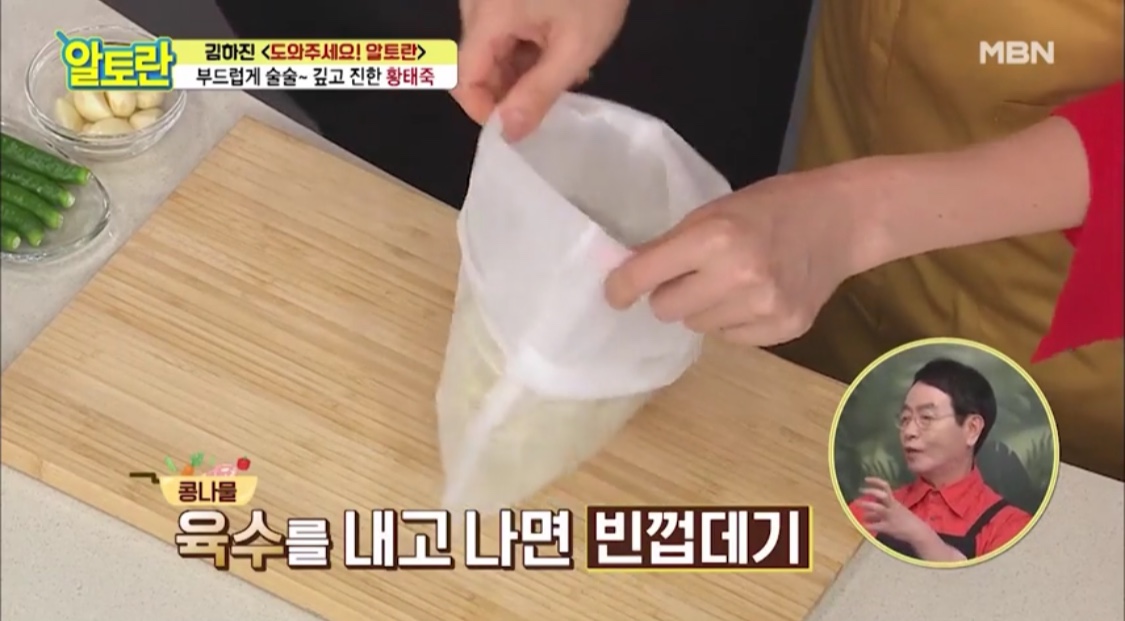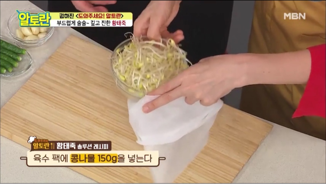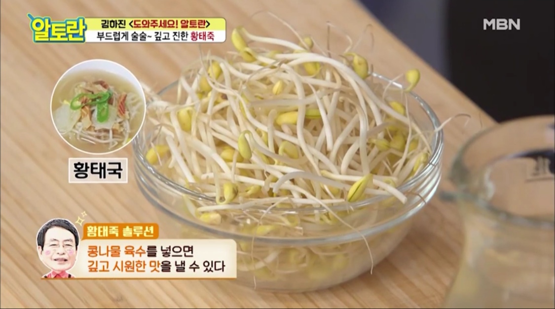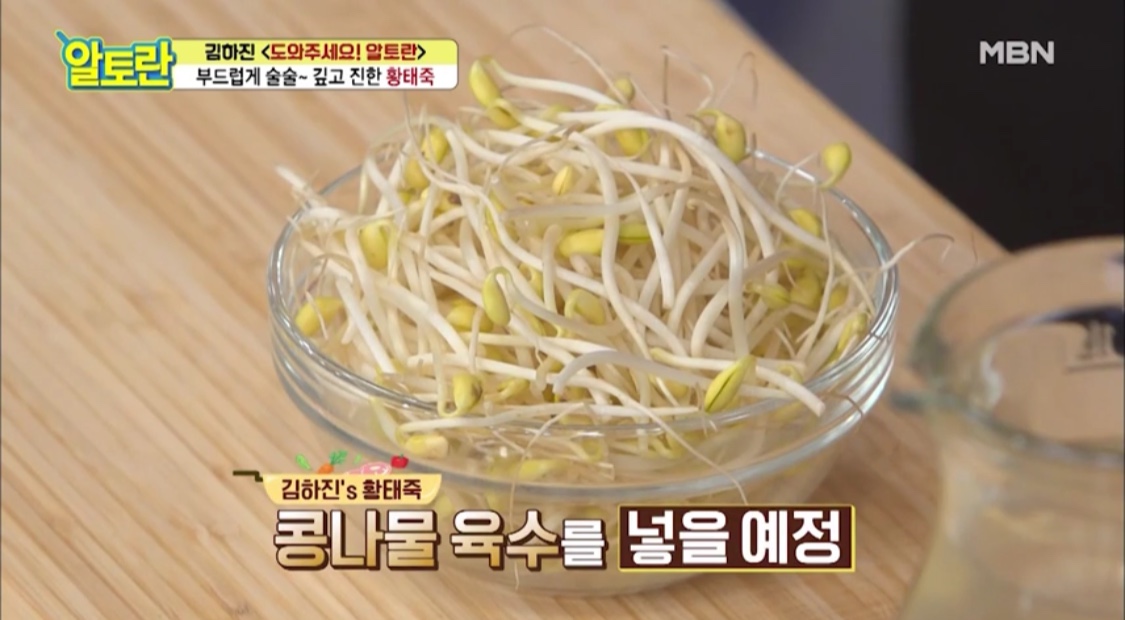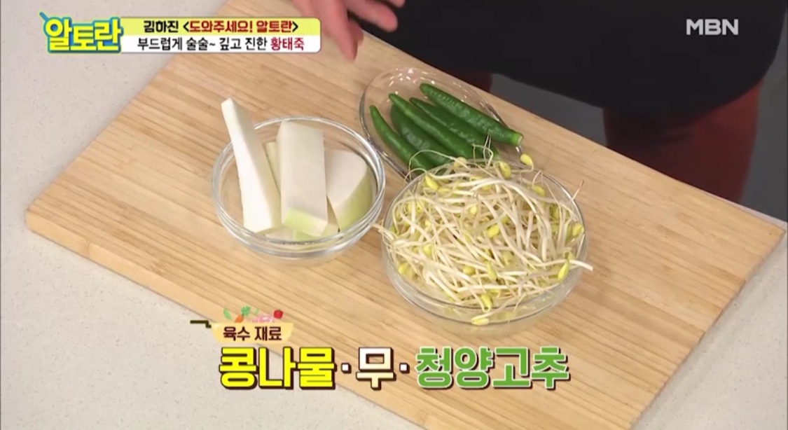 황태 죽 육수에는 콩나물 육수를 쓸 거예요.
