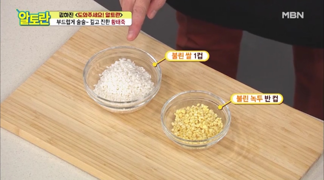 불린 쌀 1컵과 불린 녹두 1/2컵을 준비할게요.